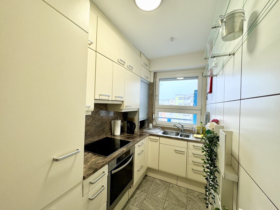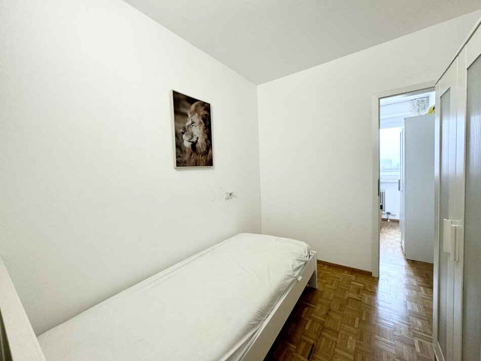 Die Wohnung verfügt über ein Schlafzimmer, ein Badezimmer, ein separates WC sowie ein flexibel nutzbares Kinder- bzw. Arbeitszimmer. Eine moderne Einbauküche, hochwertige Böden, Klimaanlage, Fernwärme und ein Personenaufzug sorgen für guten Wohnkomfort.
