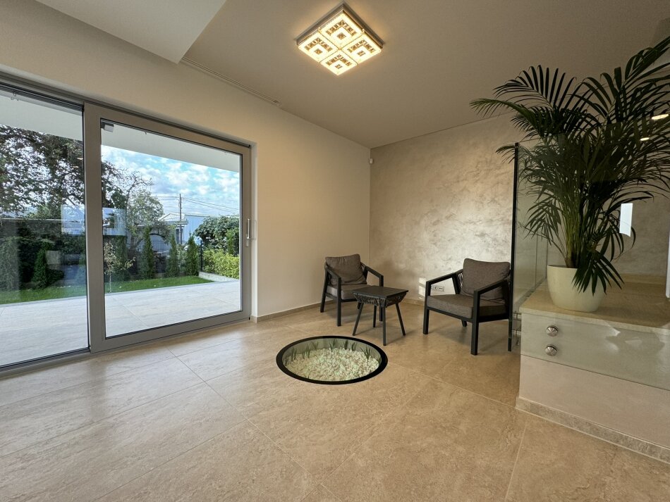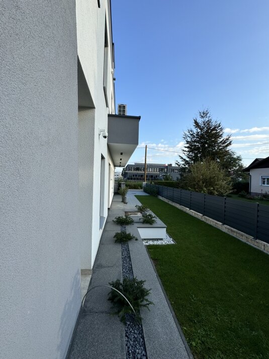 Es ist noch ein eigener Gartenanteil vorhanden, welcher perfekt bepflanzt und mit jeweils einem Rasenroboter ausgestattet ist. Somit ist auch für Entspannung am Abend oder aber auch in der Arbeitszeit gesorgt.