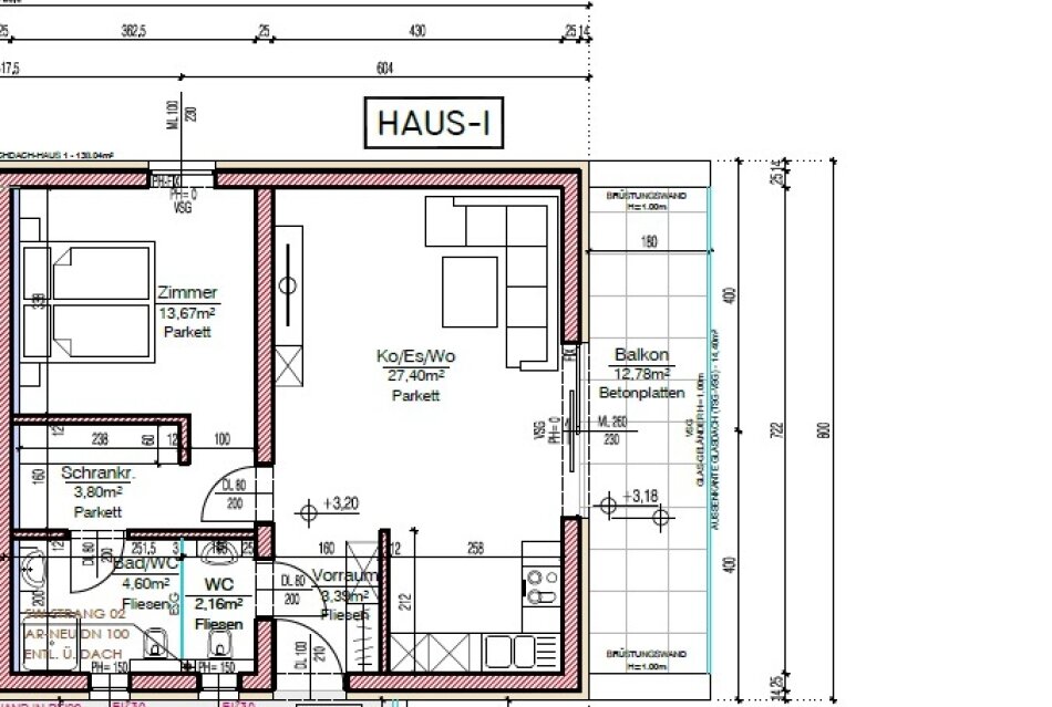 Diese 54,81 m² große Wohnung wird Sie beim ersten Begehen begeistern. Beim Betreten der Wohnung gelangen Sie in die Garderobe, von wo Sie zum Abstellraum mit viel Stauraum sowie einen Waschmaschinenanschluss gelangen. Von dort begeben Sie sich in den ca. 27,40 m² großen Wohn-Ess-Küchenbereich mit einem ca. 16,92 m² Balkon, der Sie beim Heimkommen begeistern wird. Vom Wohnzimmer gelangen Sie in den Flur, mit den Zugang zum Schlafzimmer sowie in ein geräumiges Badezimmer mit Waschbecken, Dusche mit LED-Beleuchtung, einer Toilette sowie mit einem Tageslichtfenster. Der edle Parkettboden und die hochwertige Ausstattung bieten Ihnen viel Wohnqualität.
