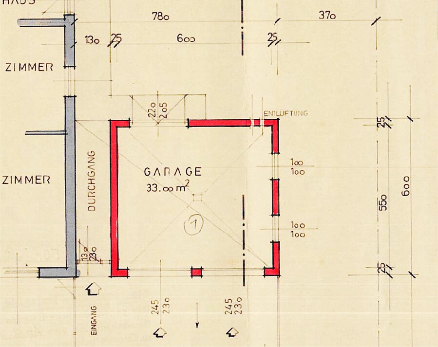 Zusätzliche Garage (ca. 19 m²) mit großem Abstellraum (ca. 12 m²) im hinteren Bereich
