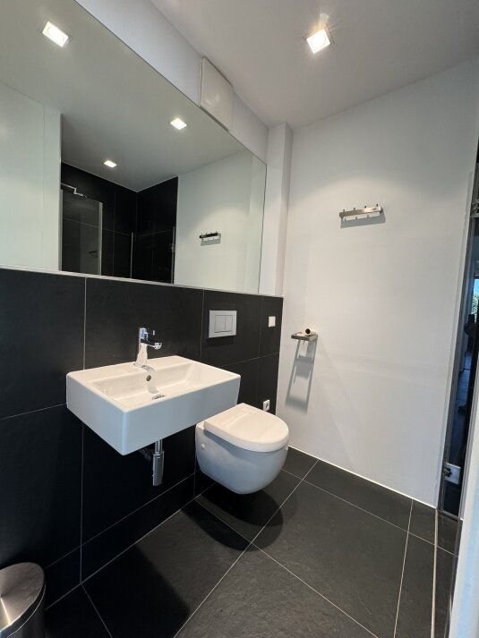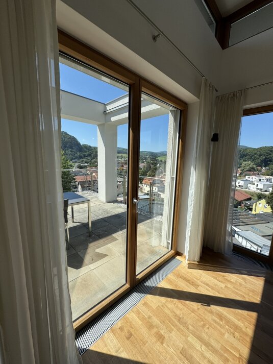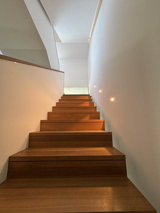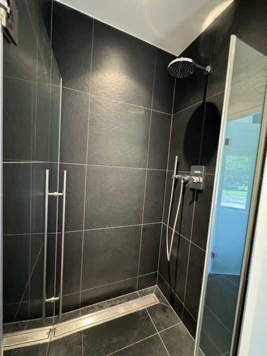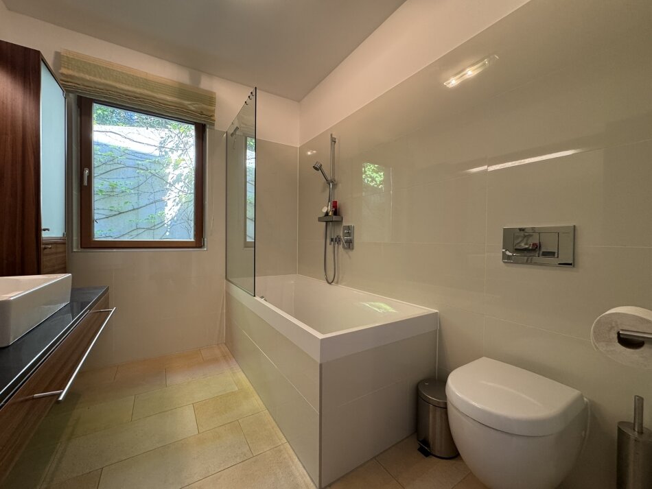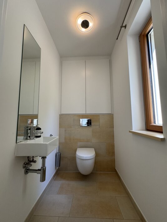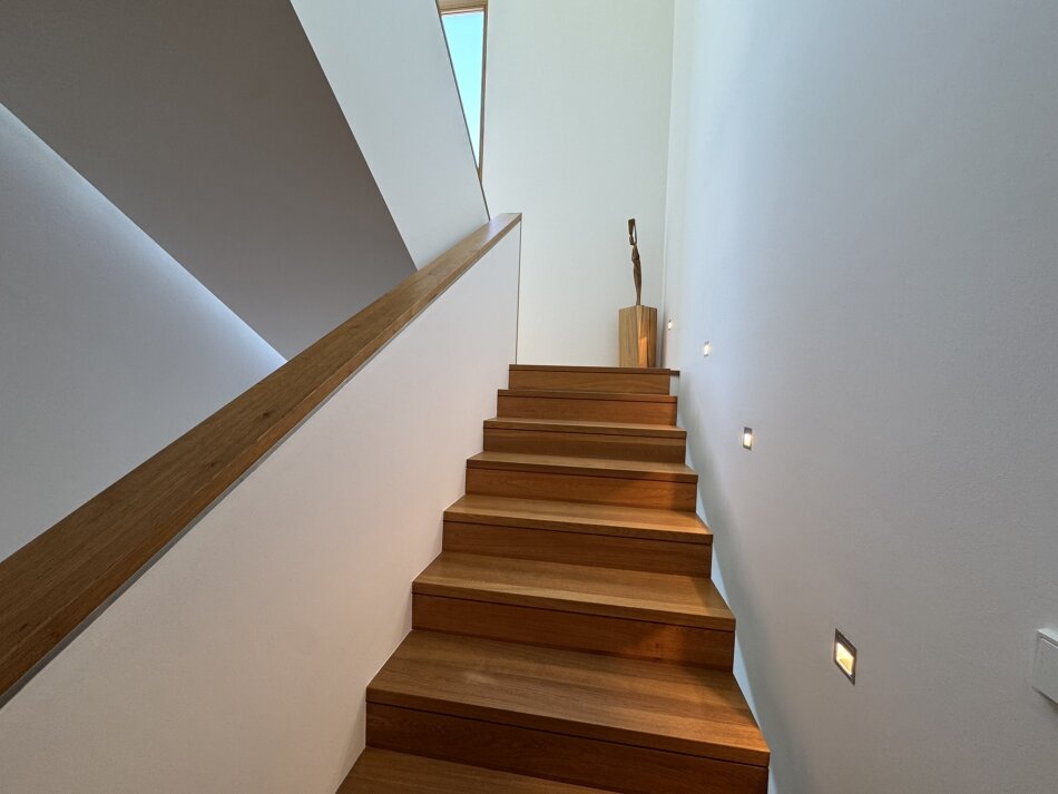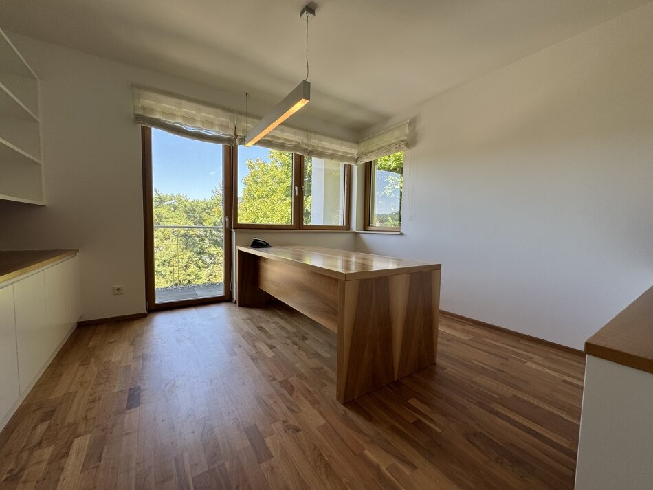 Genießen Sie den offenen Wohn-Essbereich mit hochwertiger Küche ausgestattet mit E-Geräten von Gaggenau und dem beeindruckenden Kaminofen, der mit seinem Flammenspiel von zwei Seiten sichtbar ist. Hier verbinden sich Genuss, Wärme und stilvolle Architektur. In dieser Wohnebene nämlich im 2. OG finden wir noch ein Büro und ein Gäste WC sowie auch einen zweiten Eingangsbereich welcher von der Rückseite des Hauses erreicht wird.