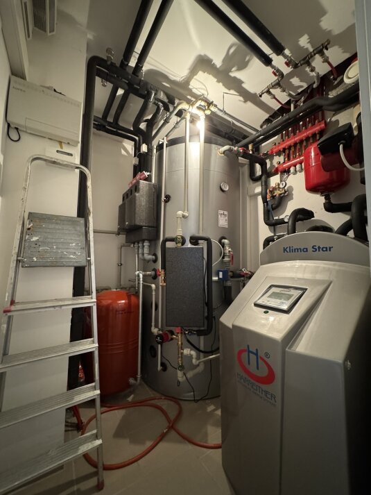 Ein Waschraum mit Waschmaschine und Trockner sowie der angrenzende Technikraum befindet sich ebenfalls auf diesem Geschoss.