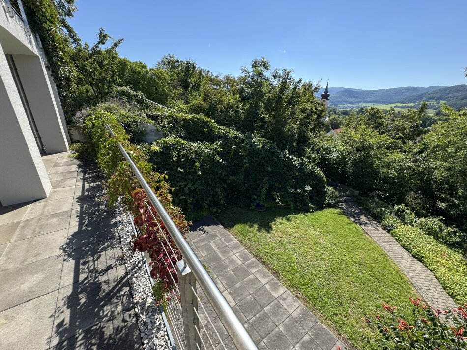 Die großzügige Terrasse eröffnet traumhafte Ausblicke ins Grüne, ein Pool kann auf Wunsch ergänzt werden. Zwei Doppelgaragen, modernste Haustechnik
