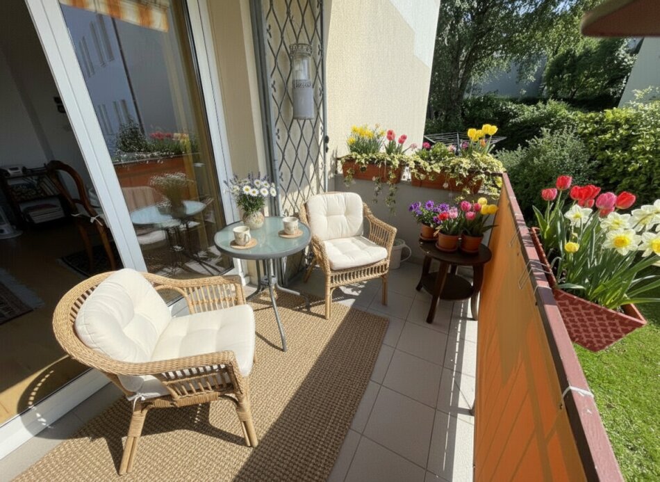 Ein Highlight dieser Wohnung ist der einladende Balkon, der Ihnen die Möglichkeit bietet, die frische Luft und die Aussicht auf die Umgebung zu genießen. Stellen Sie sich vor, wie Sie hier entspannende Stunden verbringen, während Sie den Tag Revue passieren lassen oder Gäste empfangen.