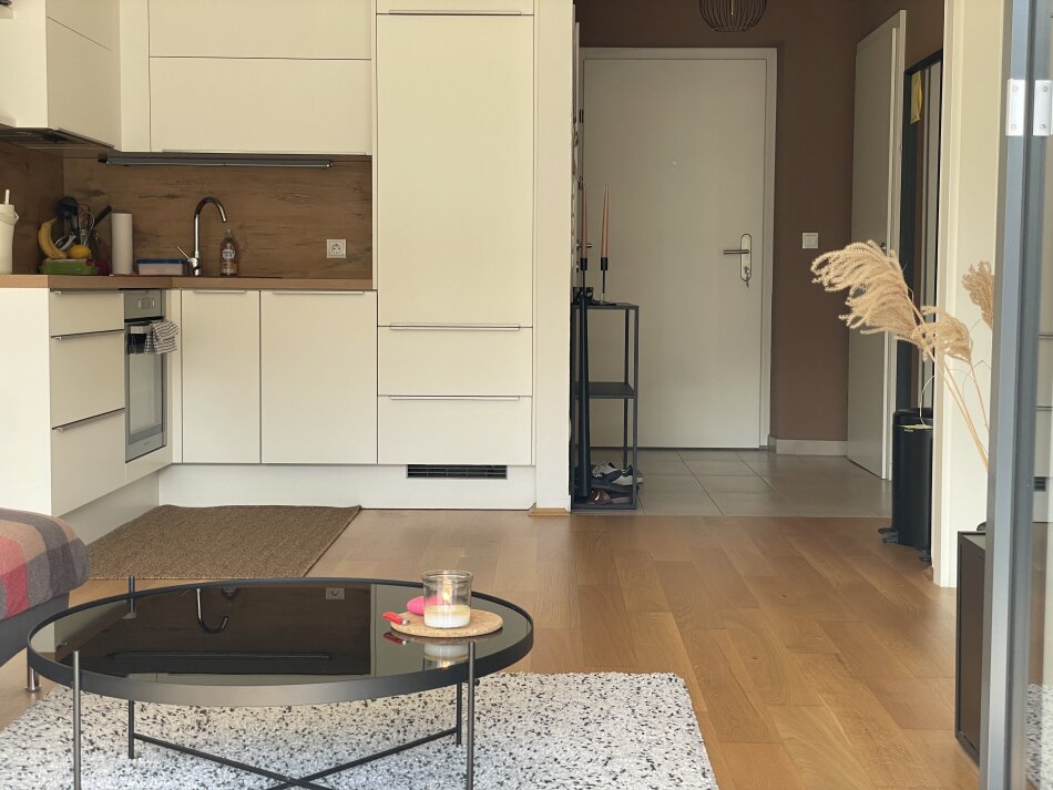Hier genießen Sie nicht nur den Komfort eines modernen Wohnraums, sondern auch die Vorzüge einer durchdachten Ausstattung. Die Fußbodenheizung sorgt für wohlige Wärme, während hochwertige Fliesen und Parkettböden ein stilvolles Ambiente schaffen. Im Badezimmer verfügen Sie zusätzlich über den Vorzug eines Handtuchheizkörpers! Die schöne Einbauküche von DAN ist perfekt in den Wohnbereich integriert und bietet Ihnen ausreichend Platz, um Ihre kulinarischen Fähigkeiten auszuleben!