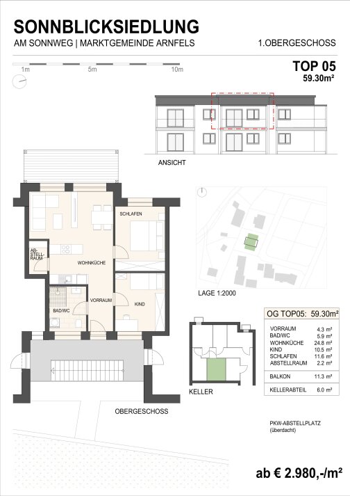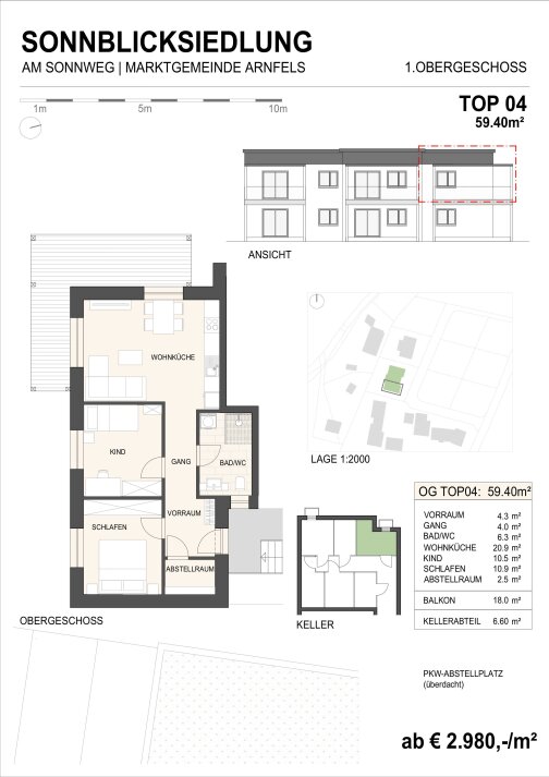 Der Quadratmeterpreis beträgt – je nach Ausstattung – ab € 2.980,–.
