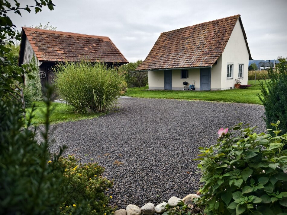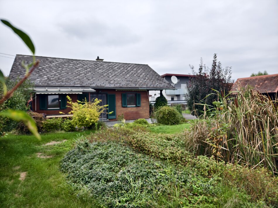 Das Haus besticht durch einen großen Wohn- und Essbereich mit direktem Zugang zur Terrasse – hier öffnet sich der Blick ins Grüne und auf das wunderschöne Biotop, das dem Garten eine besondere Atmosphäre verleiht. Eine separate Küche, zwei gemütliche Zimmer, ein Badezimmer sowie ein extra WC sorgen für eine durchdachte Raumaufteilung und angenehmen Wohnkomfort.