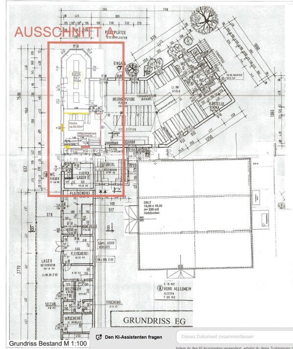 - Erdgeschoss: ca. 700 m² – derzeit als Heuriger / Gasthaus in Betrieb