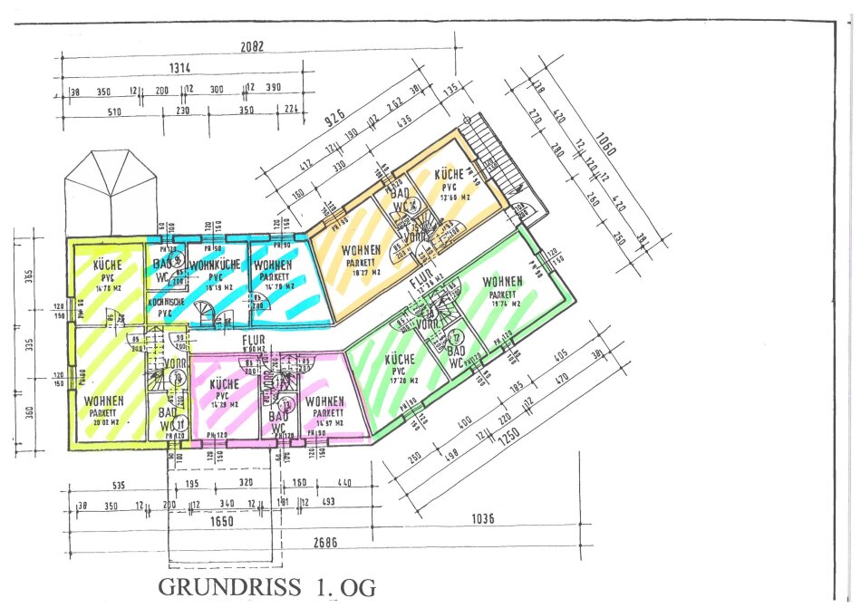 - Obergeschoss & Dachgeschoss: 5 Wohnungen mit einer Größe von je 50–68 m²