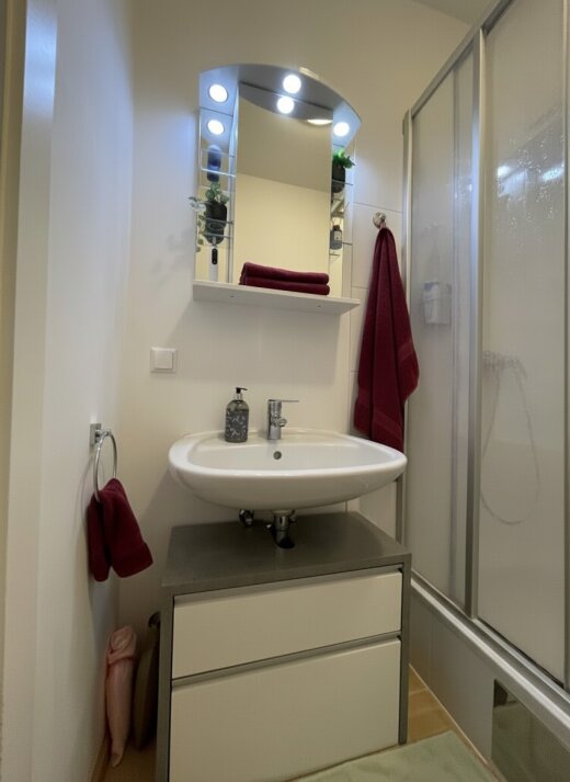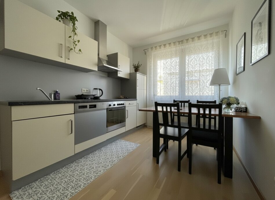 Die Wohnung wurde modernisiert und überzeugt durch ihre zeitgemäße Ausstattung. Hochwertige Fliesen und ein pflegeleichter Kunststoffboden verleihen den Räumen eine stilvolle Note. Die Einbauküche ist nicht nur funktional, sondern bietet auch genügend Stauraum für alle Ihre Kochutensilien. Der offene Wohnbereich lädt zum Verweilen ein und schafft eine angenehme Atmosphäre für gesellige Abende.
