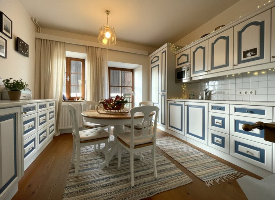 Ein besonderes Highlight ist die entzückende Wohnküche, die mit ihrem Tischherd und ihrer heimeligen Ausstrahlung das Herz jedes Landhausliebhabers höherschlagen lässt. Viele wunderschöne, alte Möbelstücke können auf Wunsch übernommen werden und verleihen dem Haus sofort jenes Flair, das man sonst nur aus Bildern kennt.
