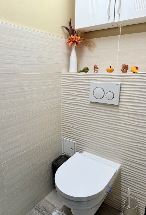 Auch das WC wurde getrennt erneuert – hell, modern und liebevoll dekoriert.