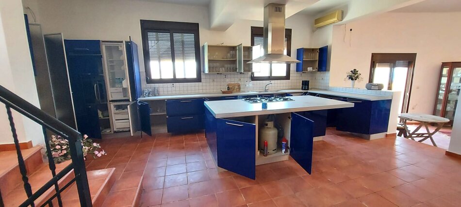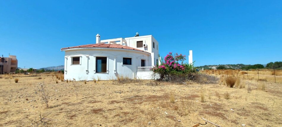 Diese mediterrane Villa mit einer Gesamtwohn- und Nutzfläche von ca. 390 m² befindet sich in außergewöhnlicher Lage auf einem Hochplateau im Gebiet „Trapezia“. Grundstücke in dieser exponierten, unverbaubaren Panoramalage sind heute kaum noch verfügbar. Das im Jahr 2002 errichtete Anwesen wurde auf einem großzügigen 3.920 m² großen Grundstück erbaut und überzeugt durch seine massive Bauweise sowie eine durchdachte Raumaufteilung auf drei Ebenen. Das Dach ist mit klassischen Ziegeln gedeckt. Unter gewissen Umständen wäre sogar ein Landeplatz für Hubschrauber möglich.