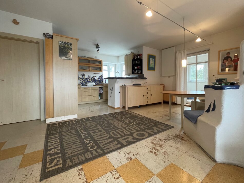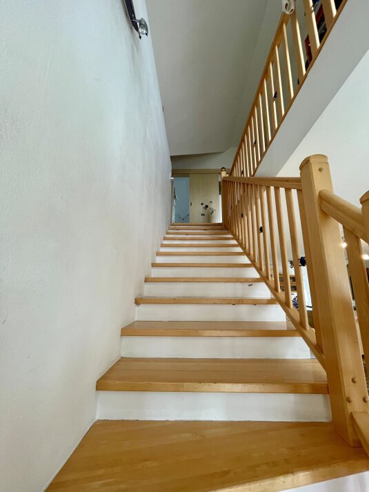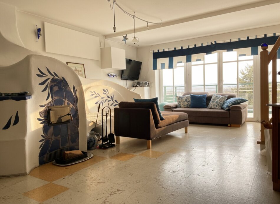 Das Erdgeschoss beeindruckt mit einem weitläufigen Küchen‑Wohnbereich, dessen Herzstück ein prachtvoller Kachelofen bildet und eine behagliche Atmosphäre schafft. Ergänzt wird diese Ebene durch zwei weitere Zimmer sowie einen außergewöhnlich großen Raum, der sich ideal als Wellnessbereich, Fitnessstudio, Atelier, Saunabereich eignet. Was hier allerdings gemacht werden müsste, ist der Boden und eventuell im EG und OG die Türen!