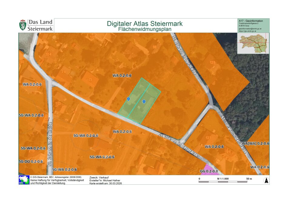 Die Immobilie befindet sich in 8295 St. Johann in der Haide, einer beliebten Wohngegend mit guter Infrastruktur. Einkaufsmöglichkeiten, Schulen und Verkehrsanbindungen sind in wenigen Minuten erreichbar. Die ruhige Umgebung bietet gleichzeitig Erholung und Lebensqualität.