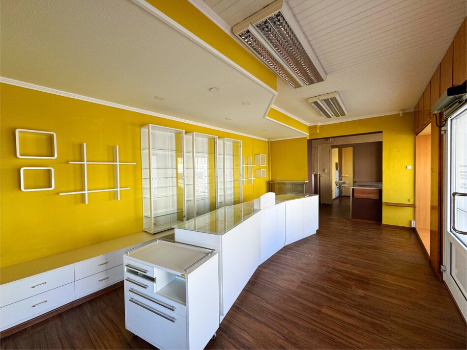 - Erdgeschoss: Ehemaliges Geschäftslokal mit großen Schaufensterflächen und optimaler Sichtbarkeit durch die Ecklage – ideal für maximale Kundenfrequenz und Markenpräsenz.